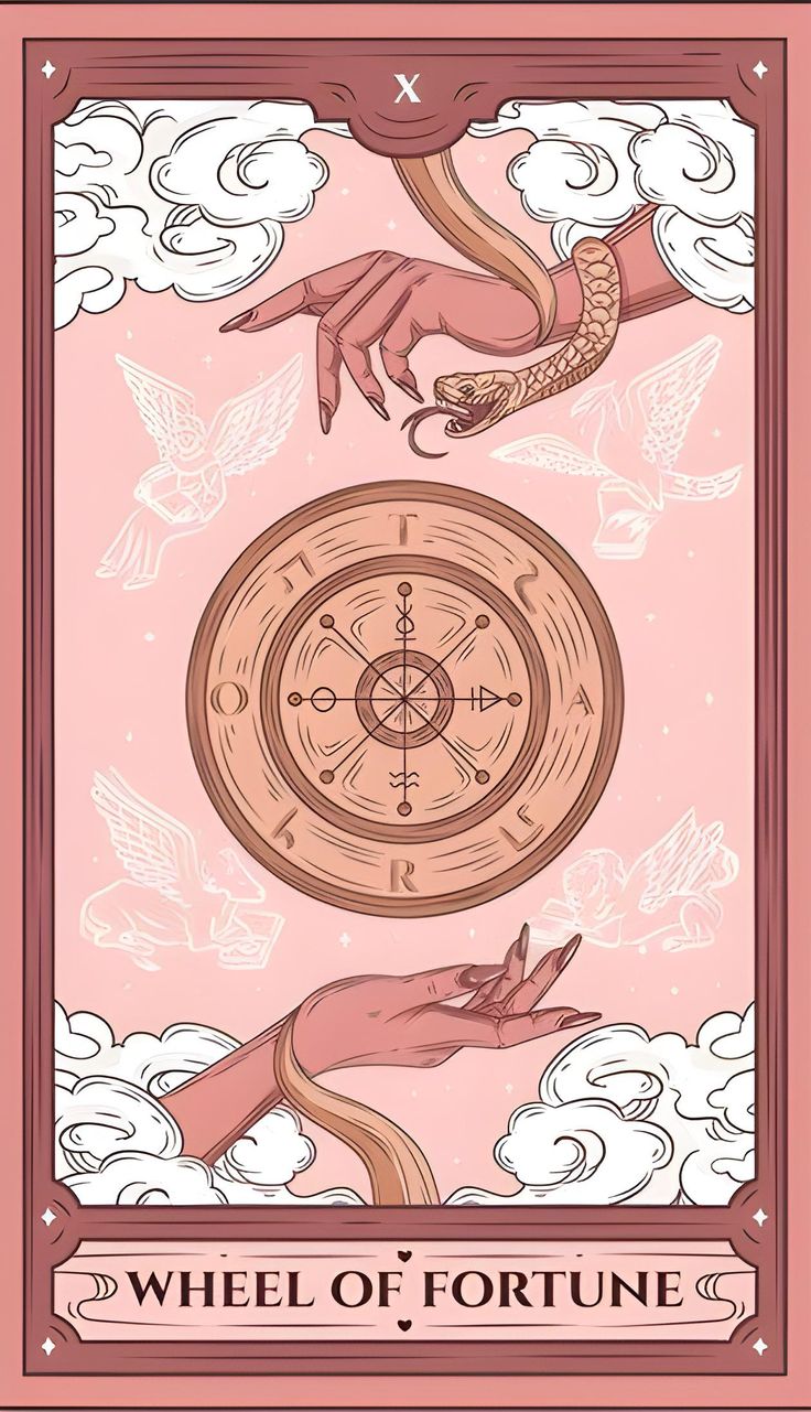 Volví a mi casa y saqué una carta de tarot. Salió la X: La rueda. La rueda de la fortuna representa el cambio constante, los ciclos de la vida y el destino en movimiento. En términos de Reiki y energía, esta carta nos habla de bloqueos o fluctuaciones energéticas que pueden estar afectando nuestra estabilidad.